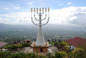 2 – Uma menorá de 60 metros de altura, possivelmente a maior do mundo, fica perto da cidade de Tondano – cerca de 20 quilômetros ao sul de Manado