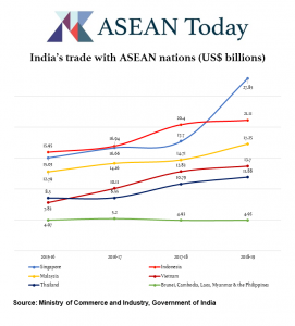 1 – Muito se fala da influência da China do Japão e até da Rússia na região, mas e a Índia? A Índia tem aumentado seu comércio com a região, mas ainda é muito díspar e sem um plano estatal bem definido. Veja o gráfico: